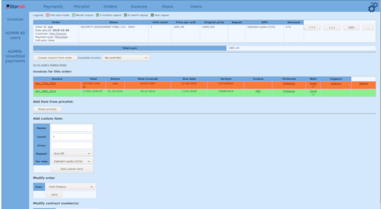 Zde bychom hlavně zmínili automatické načítání plateb z banky s fakturami, více verzí vzhledu faktur (např. pro české a anglicky mluvící klienty), měsíční přehledy pro účetní atd... Full rest api pro vytvoreni nove faktury externím programem.